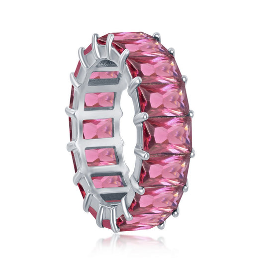 Sterling Silver 6mm Ruby CZ Emerald-Cut-Cut Eternity Band Ring